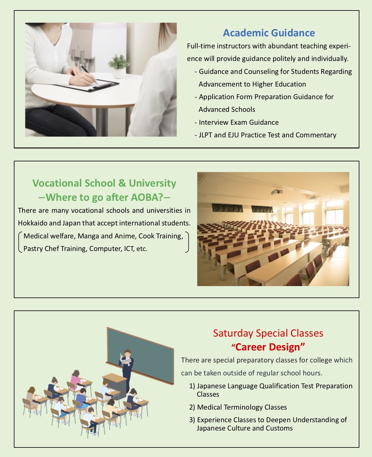You can rent a dormitory so that you can start living in Japan immediately after your arrival if you wish. Each room has a kitchen, bath, toilet, and heating. (The photos shown below are for illustration purposes only.)